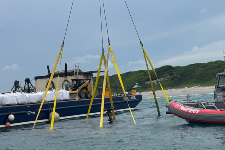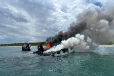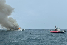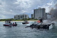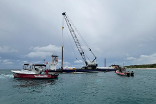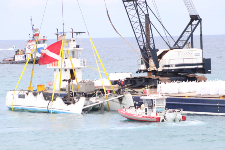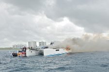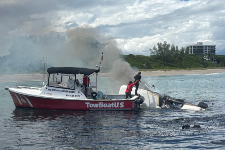 TowBoatU.S. Ft. Lauderdale responded to a 52’ Lagoon catamaran that caught fire offshore of Boca Inlet. Firefighters were able to contain the blaze while our crew secured a tow line and towed the vessel into shallower water. The vessel ultimately sank in approximately 12 feet of water due to the large volume of water used to extinguish the fire. Our salvage team developed and executed a recovery plan using divers to rig lifting straps and a crane barge to raise the vessel to the surface. Once lifted, dewatering pumps were used to remove the remaining water before the catamaran was placed on a barge and transported to shore, where it was inspected and properly disposed of.